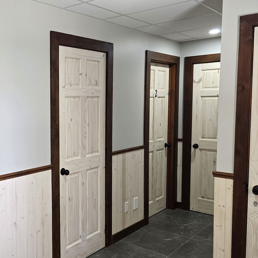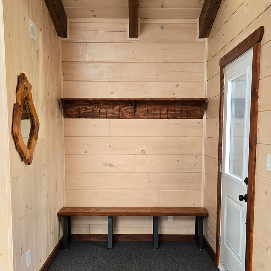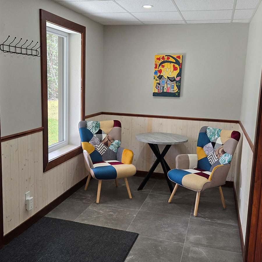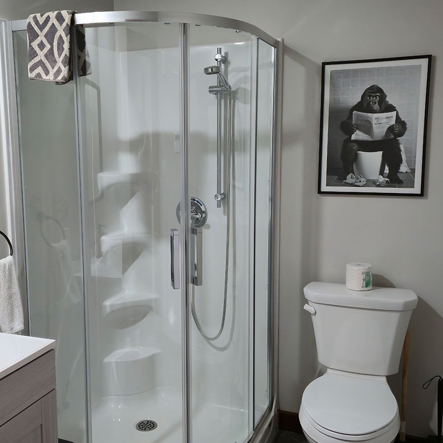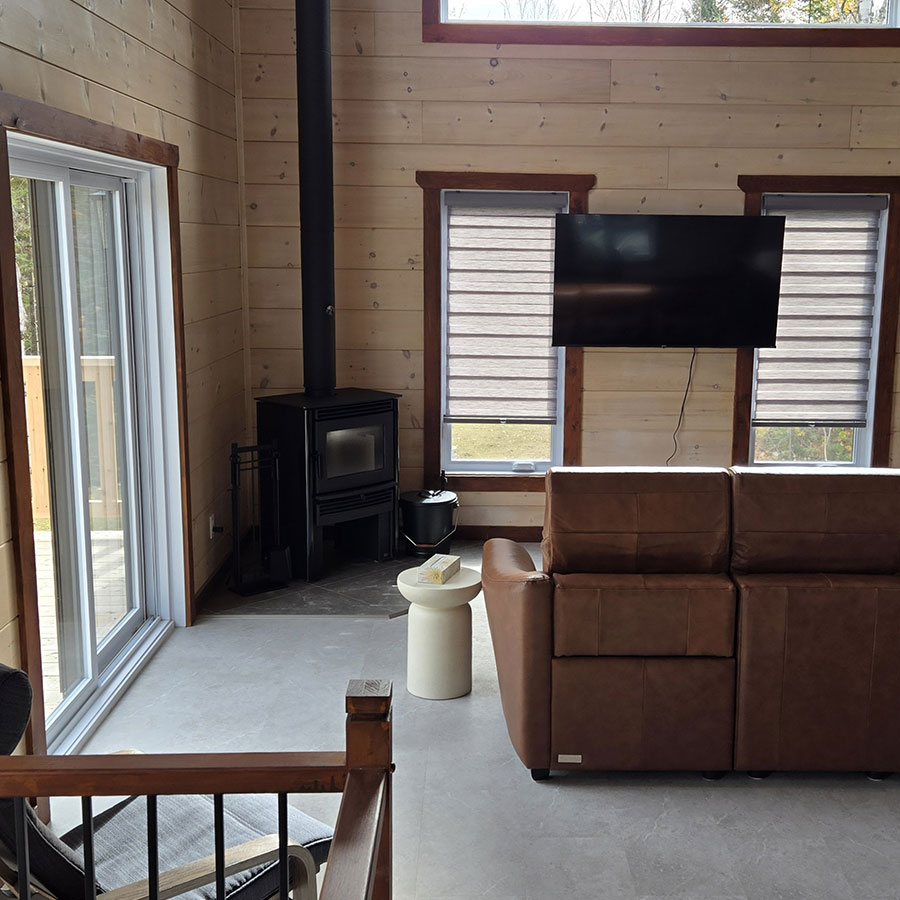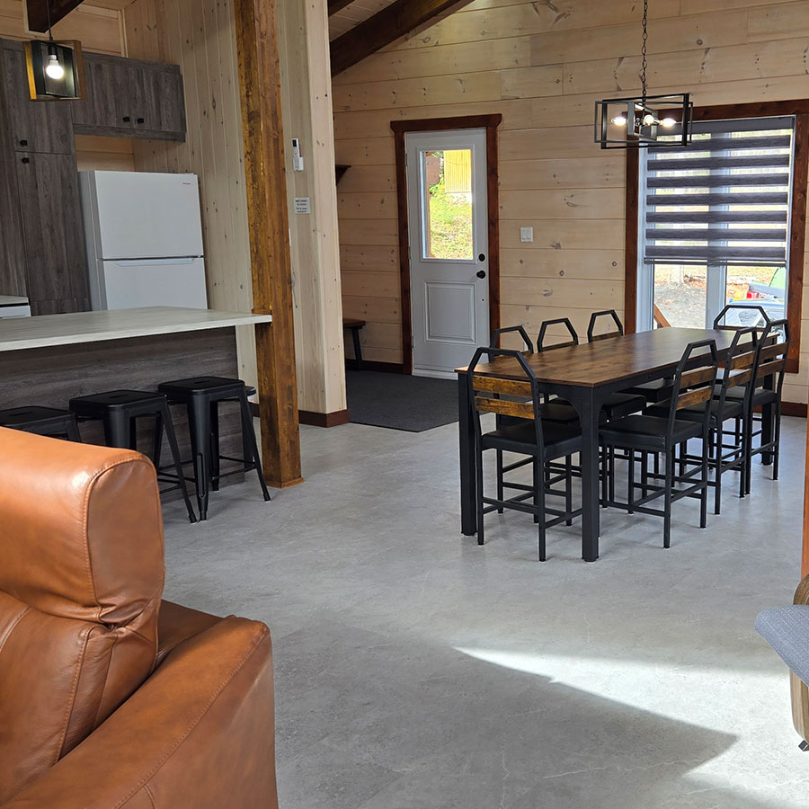 • Chambre #1 : 1 lit queen, 2 lits simples superposés et une salle de bain privée (douche)